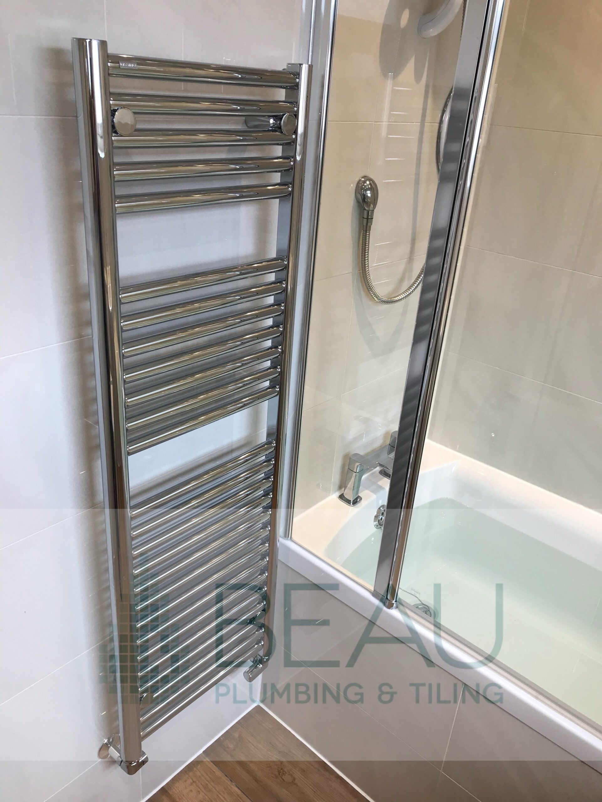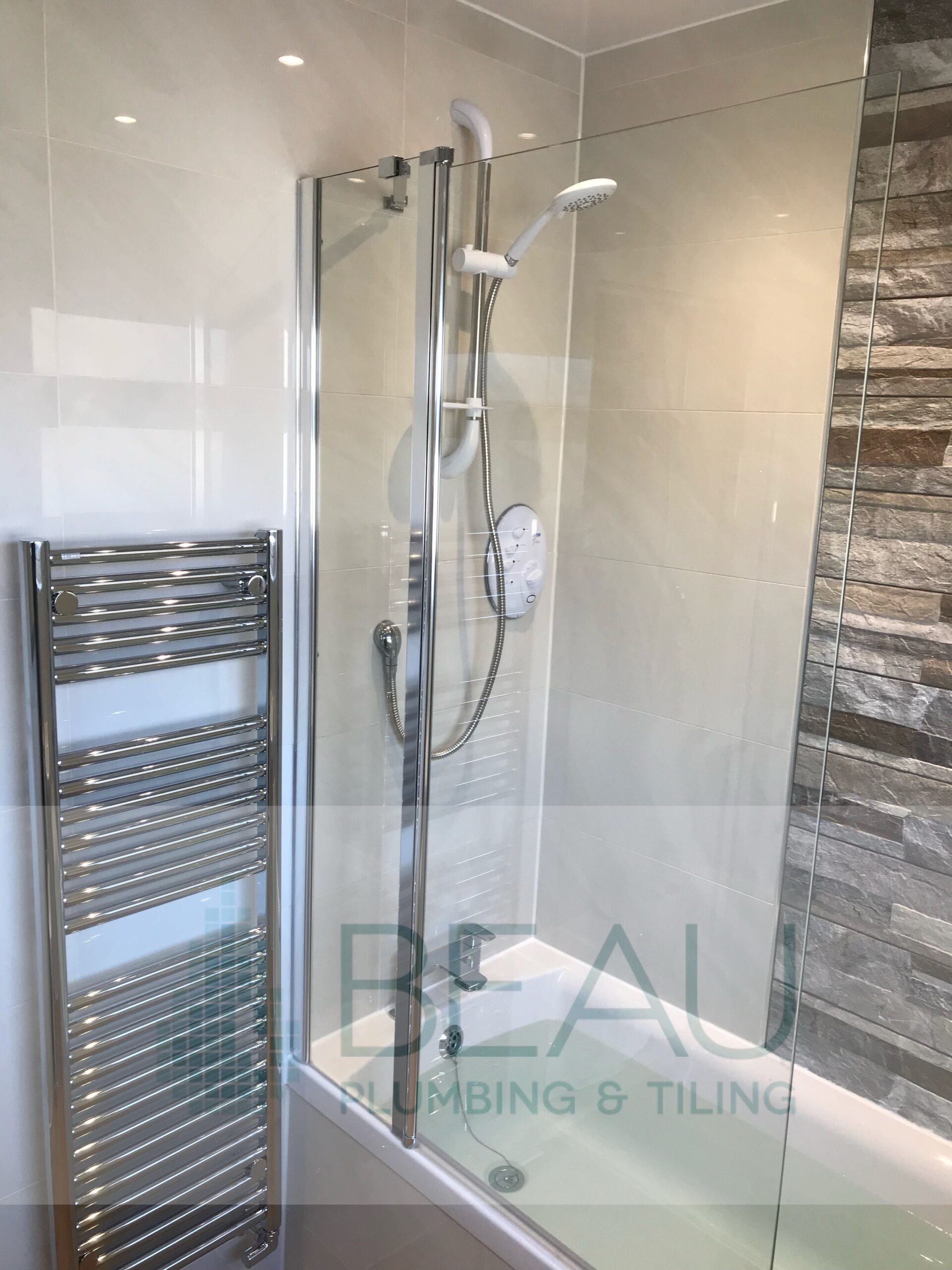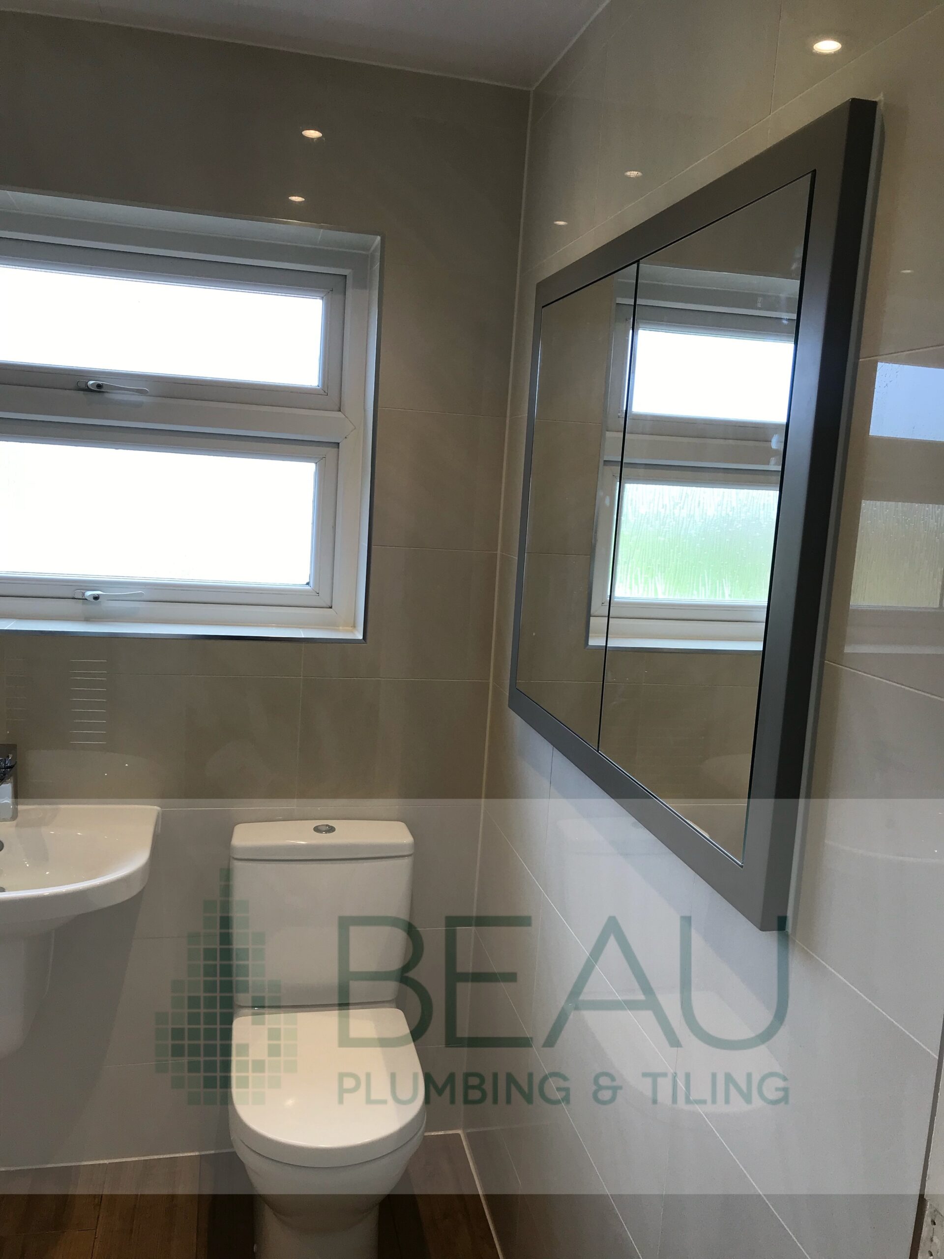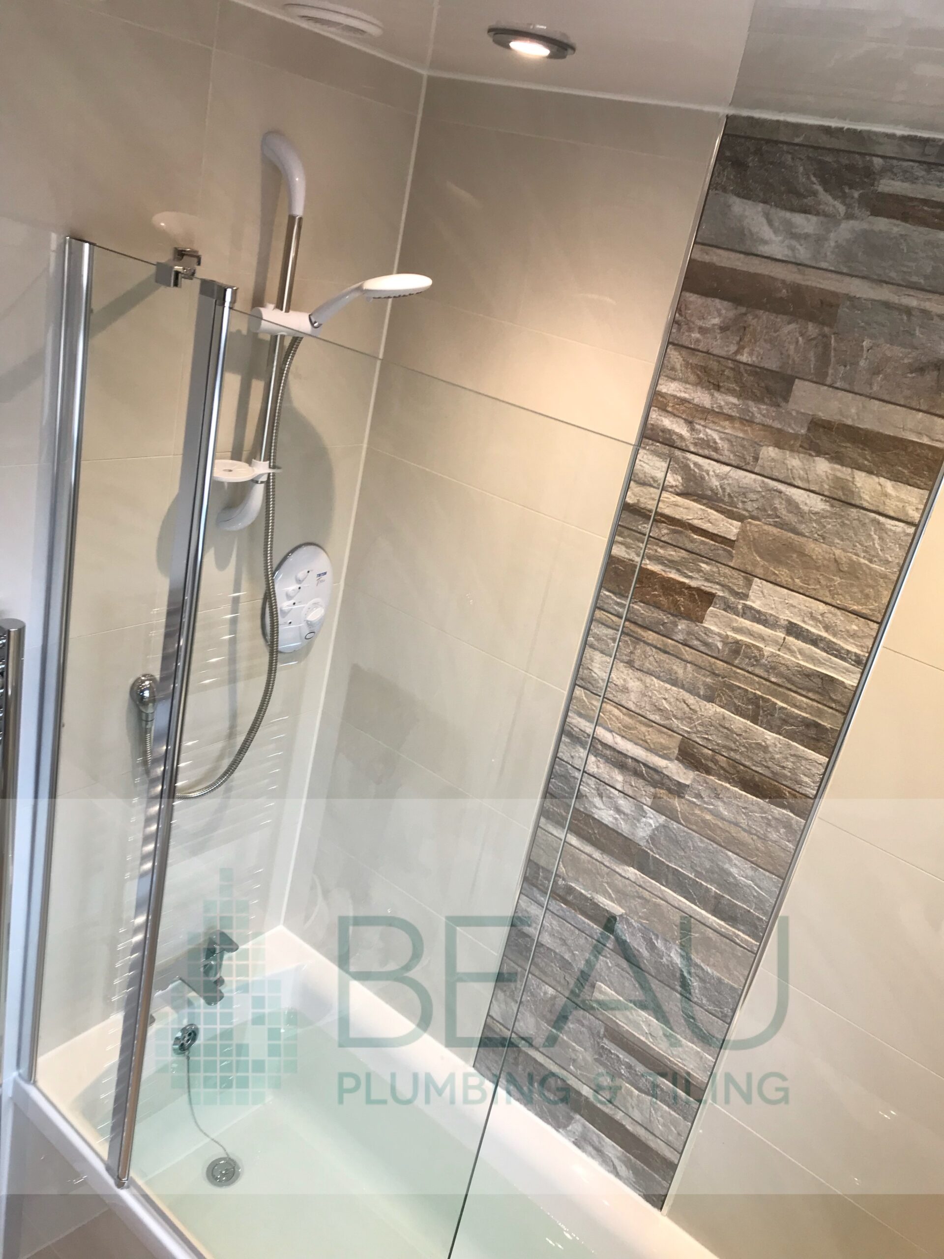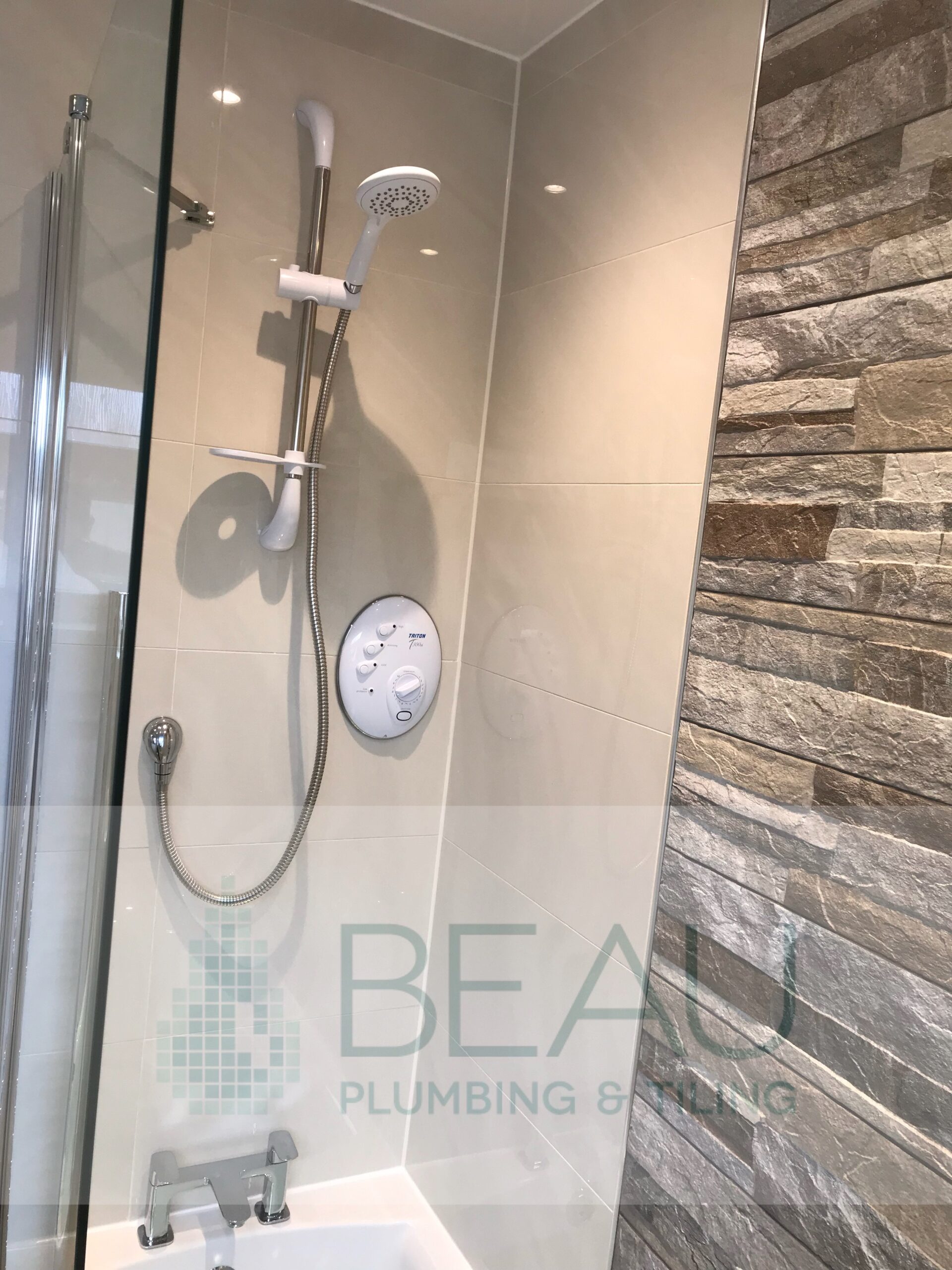 Other features we installed amongst the underfloor heating are a concealed cupboard which is built into the wall to save space within the bathroom & A Slim line Electric Shower getting rid of the usual ‘Bulky’ box that normally comes alongside having an Electric Shower.